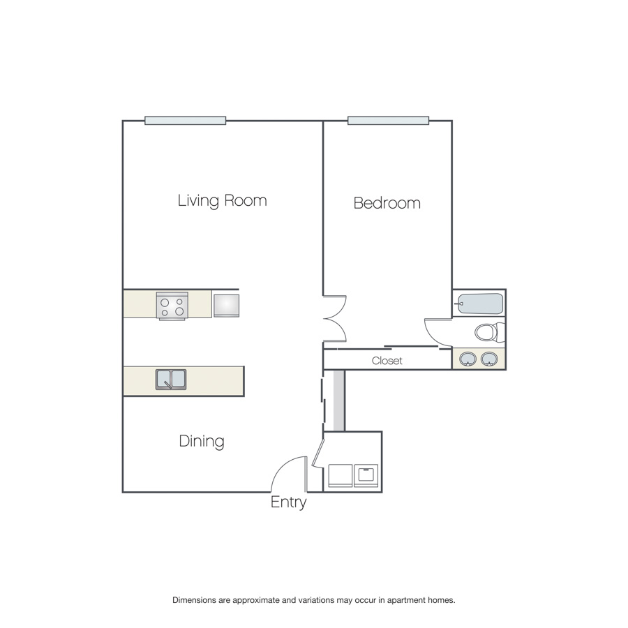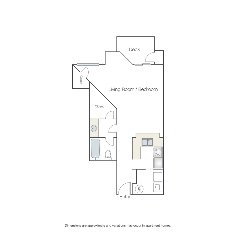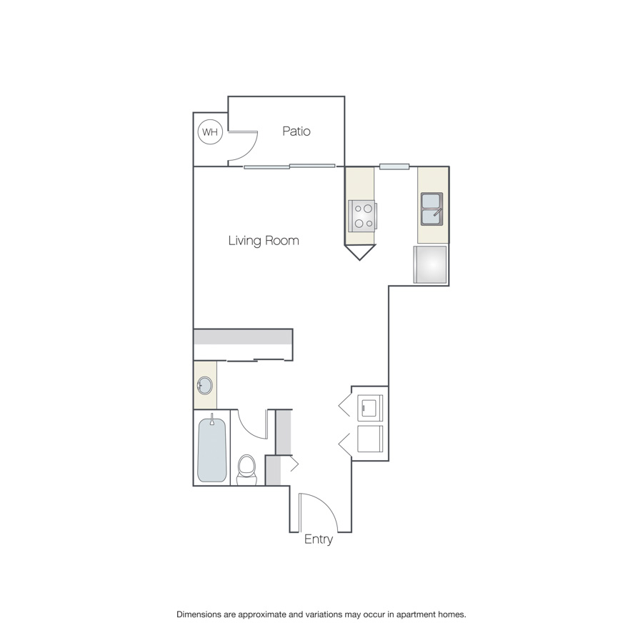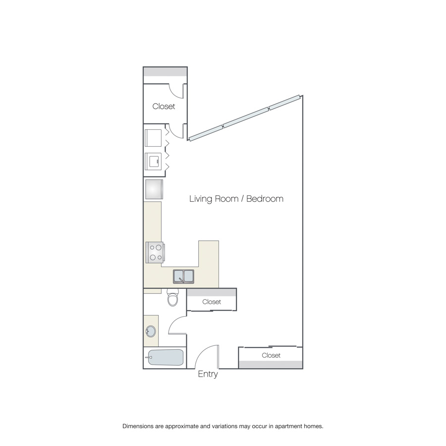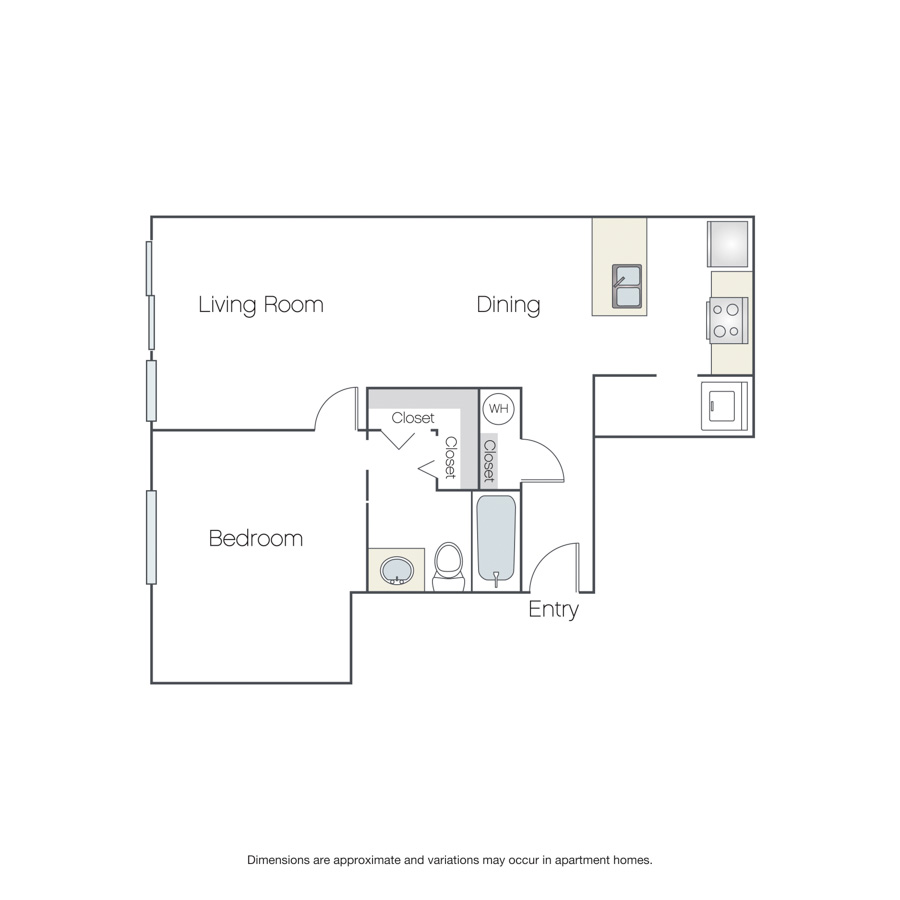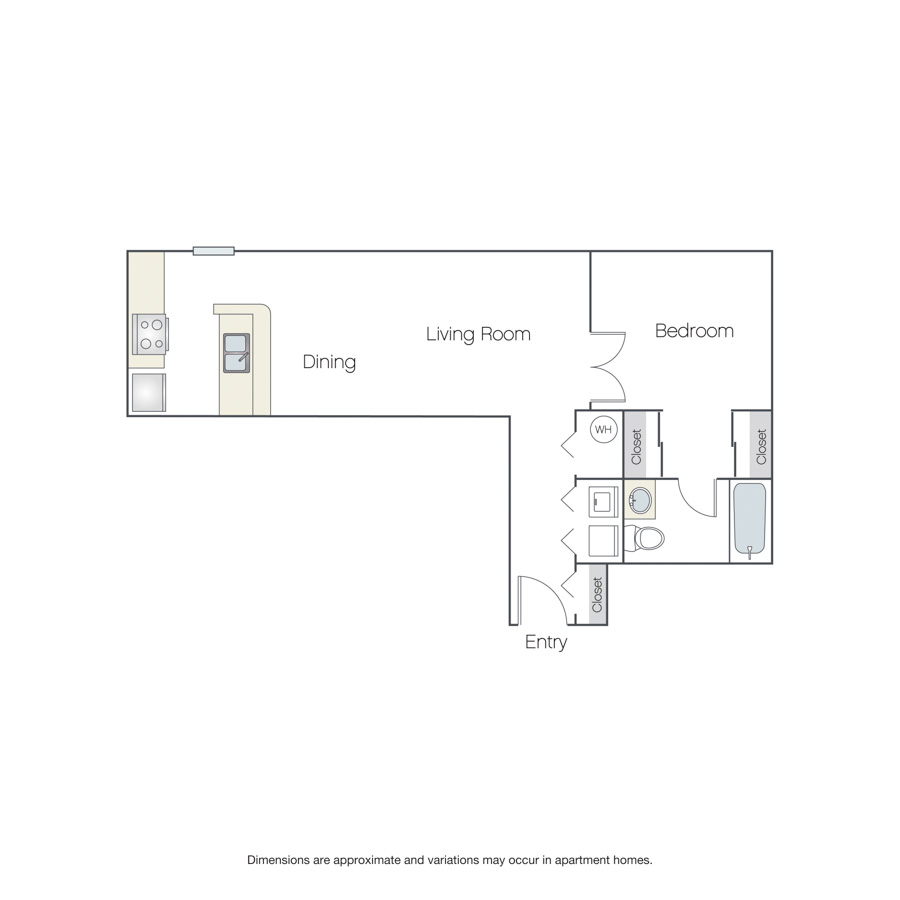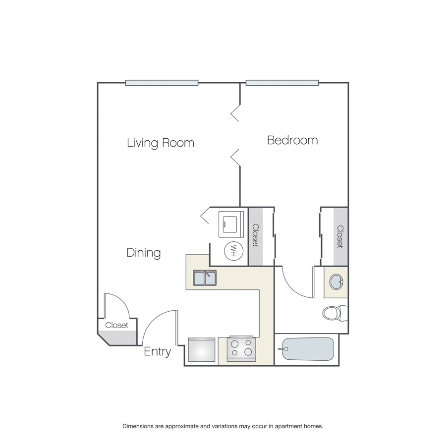 Rendering of the Bell floor plan with 1 bedroom[s] and 1 bathroom[s] at Griffis Belltown