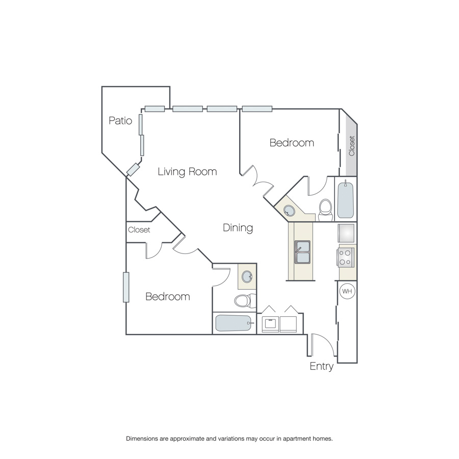 Rendering of the Cedar floor plan with 2 bedroom[s] and 1 bathroom[s] at Griffis Belltown