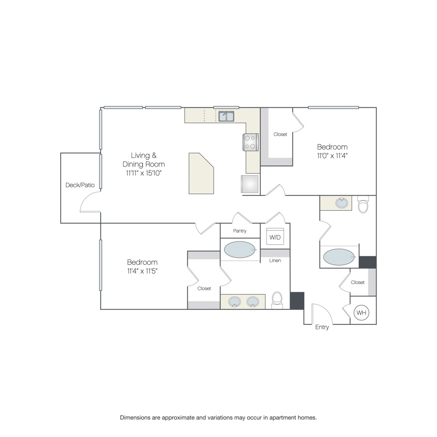 This two-bedroom, two-bath apartment home features an open kitchen and living area that opens to a private patio in the back. Both bedrooms feature spacious closets, and the primary’s connects to the primary bath. The home is complete with plenty of closet storage and an in-home washer and dryer.