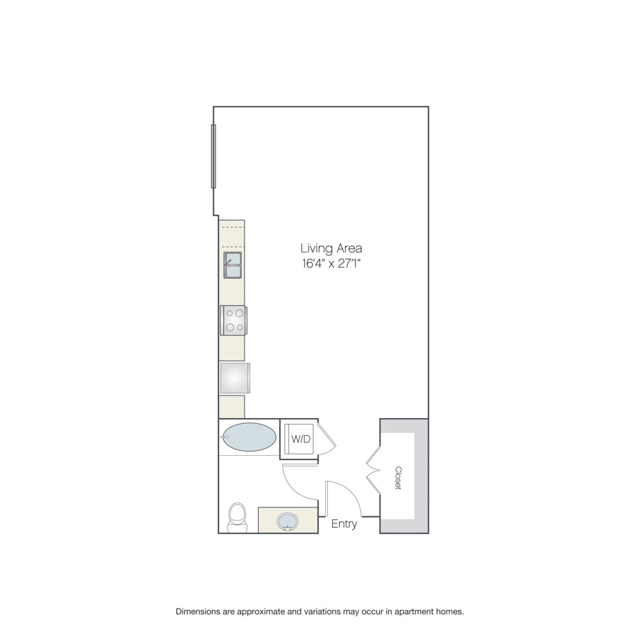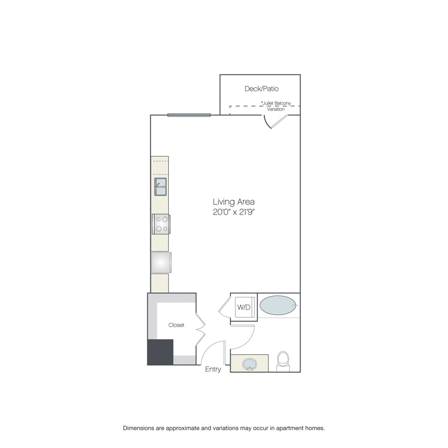 Rendering of the Bartali floor plan with a Studio bedroom and 1 bathroom[s] at Griffis Cherry Creek