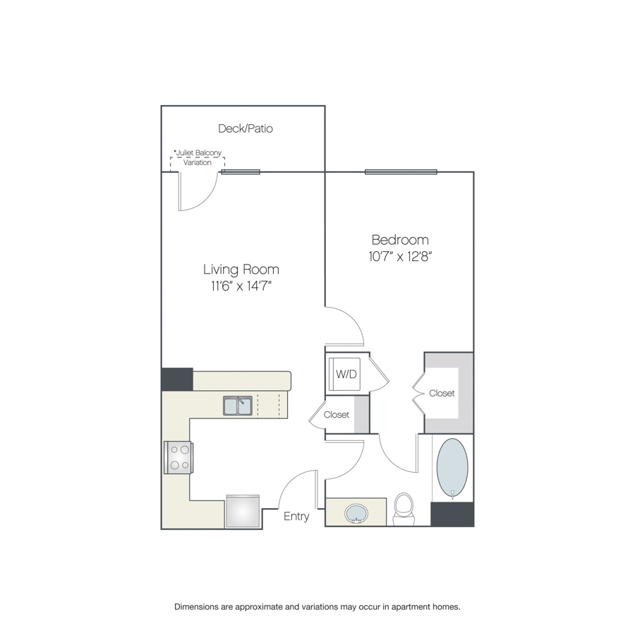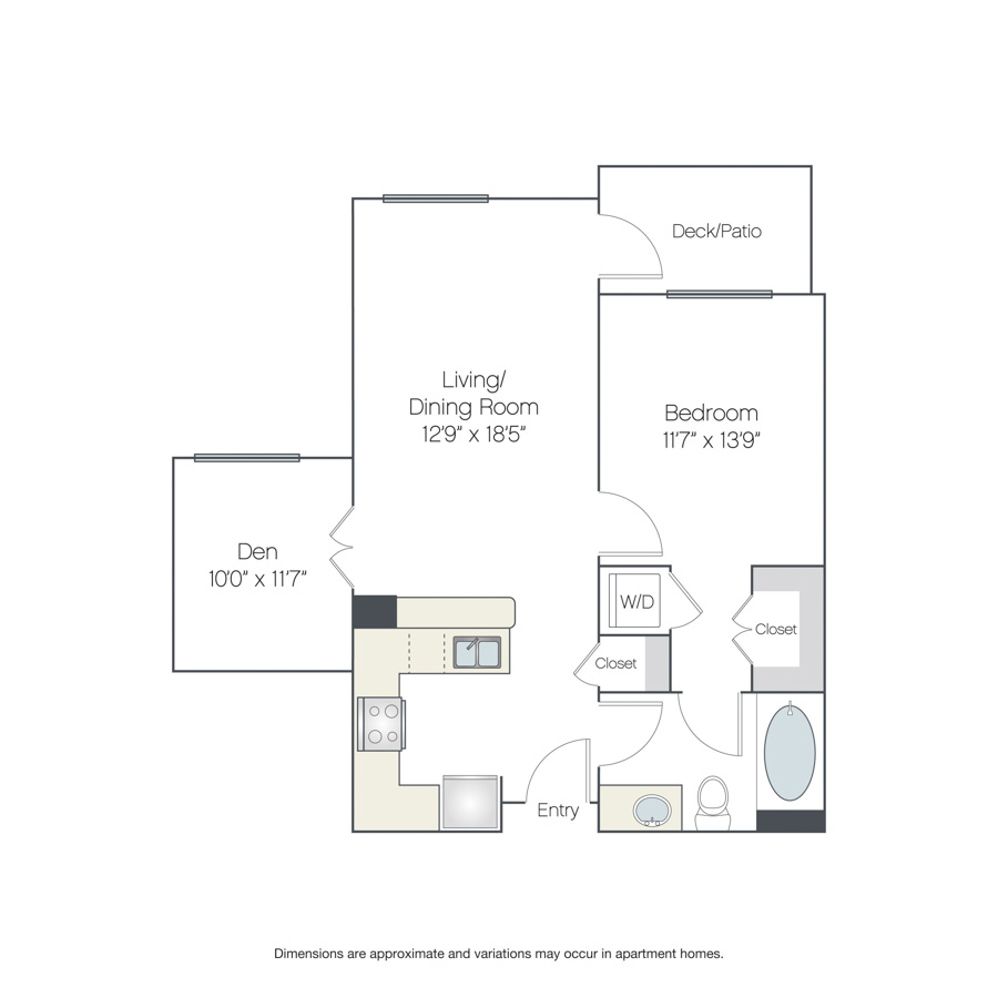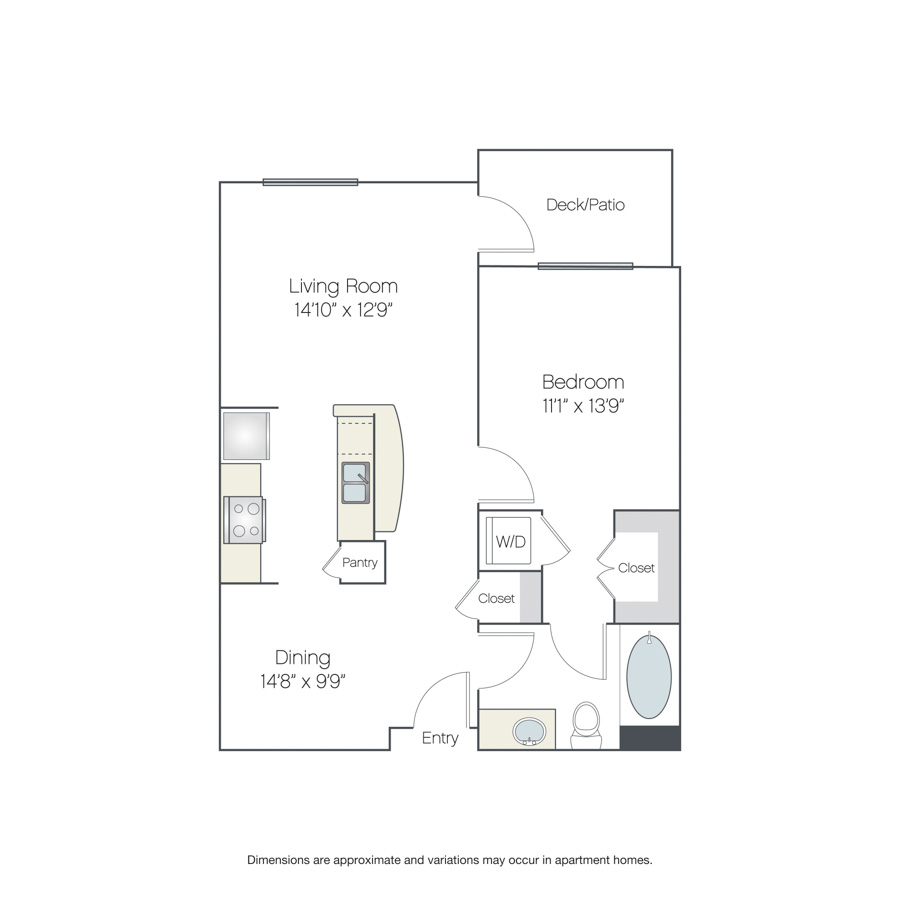 Rendering of the Kelly floor plan with 1 bedroom[s] and 1 bathroom[s] at Griffis Cherry Creek