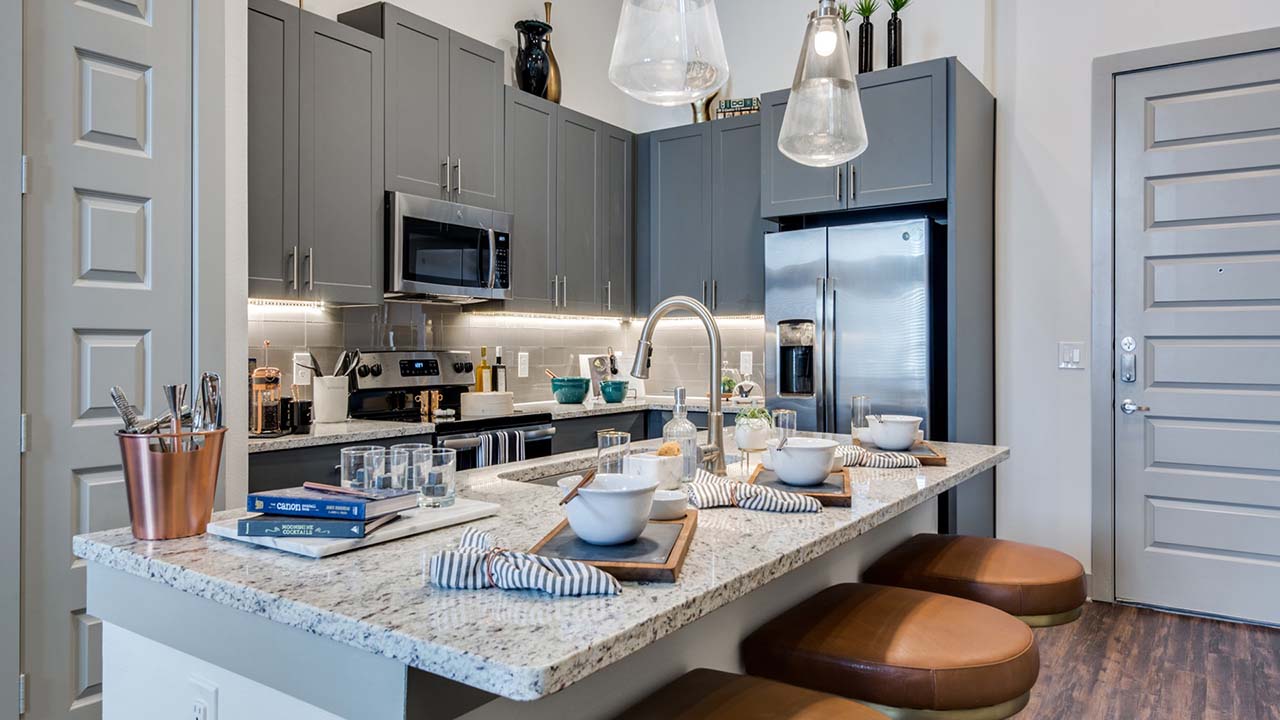 Experience Griffis Frisco, downtown apartments in Frisco, TX. Enjoy modern amenities like year-round resort style pools, a rooftop lounge, 24-hour fitness center with a yoga studio, and a resident lounge. Our apartments feature stainless steel appliances, wood-style flooring, and granite countertops. Envision living at Griffis Frisco.