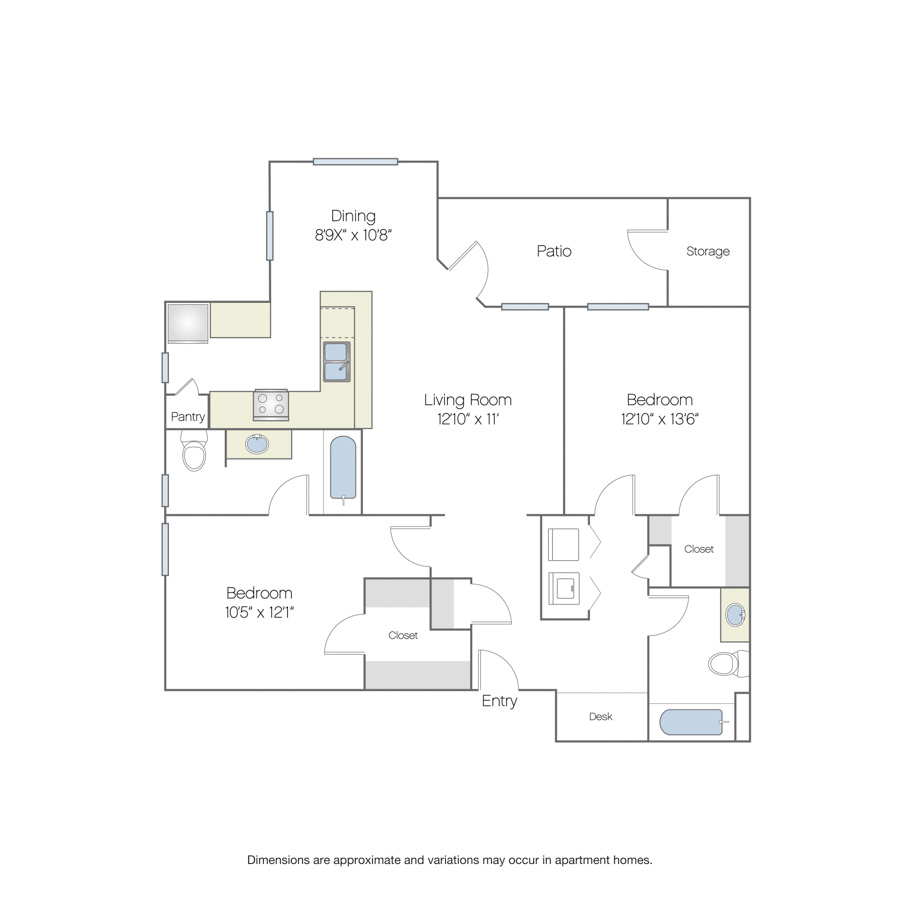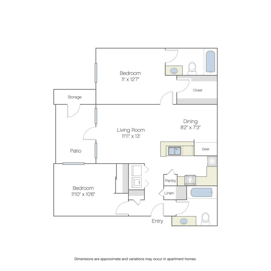 Rendering of the Sydney floor plan with 2 bedroom[s] and 2 bathroom[s] at Griffis North Creek