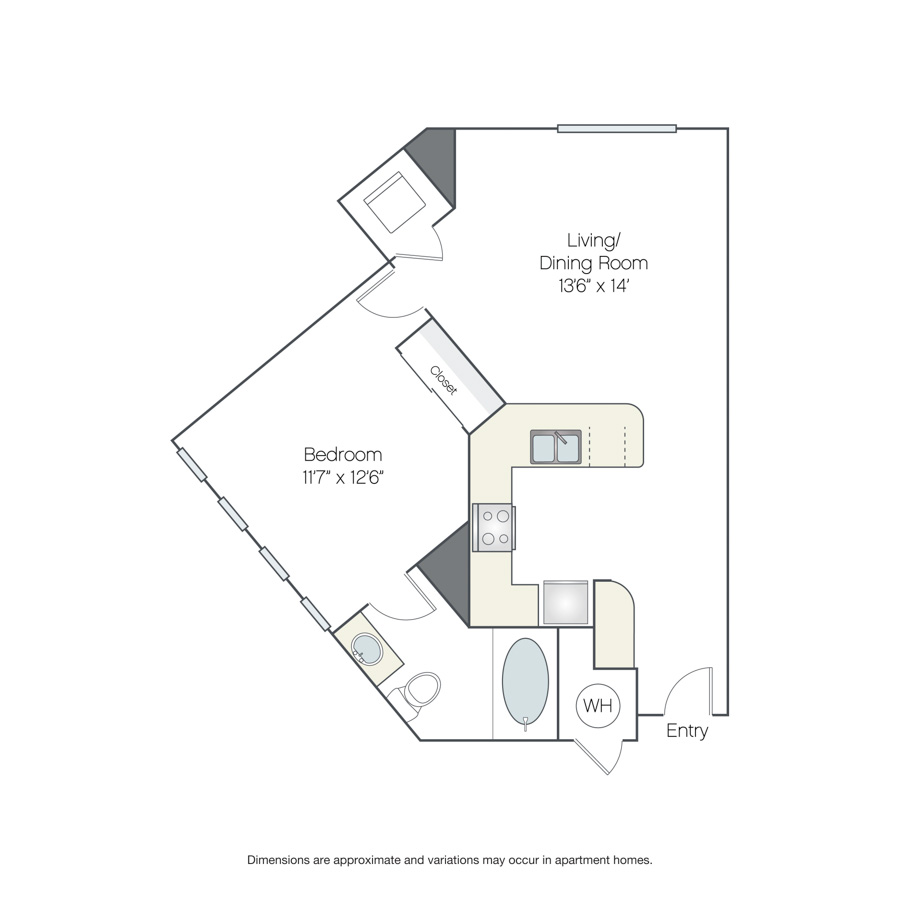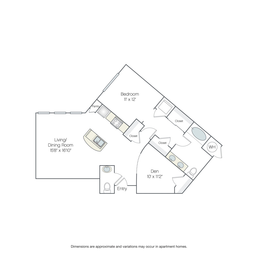 Drawings are approximate and floor plans are subject to change. Interior photographs are representative of the floor plan and may not depict the actual unit. Finishes may vary by unit. Additional lease terms may be available during the application process. Lease term, rent amount, deposit amount, move-in special and date available are subject to change without notice. Terms and Conditions. View Fees.